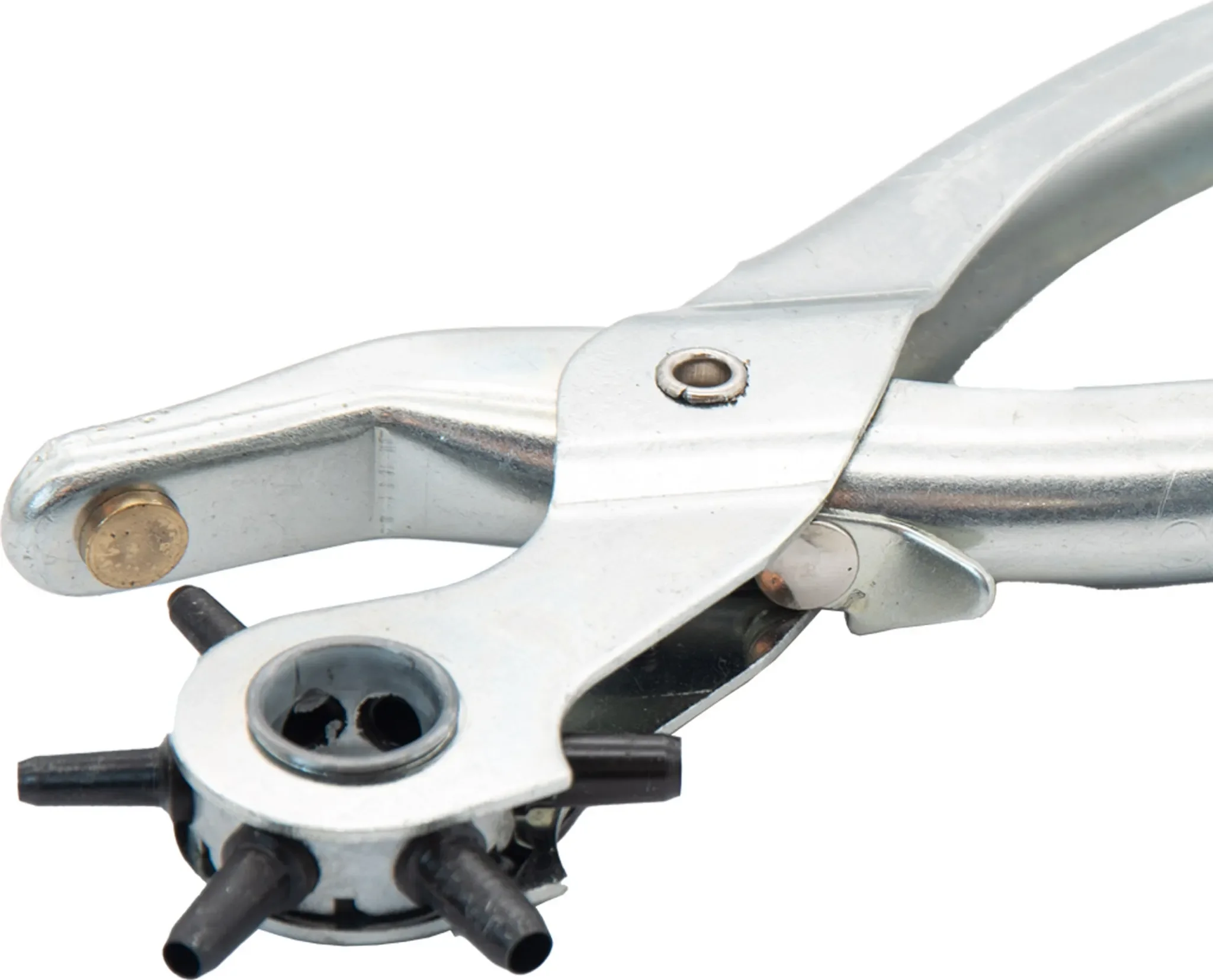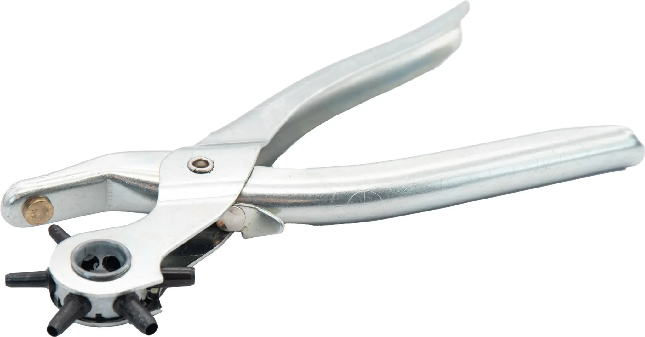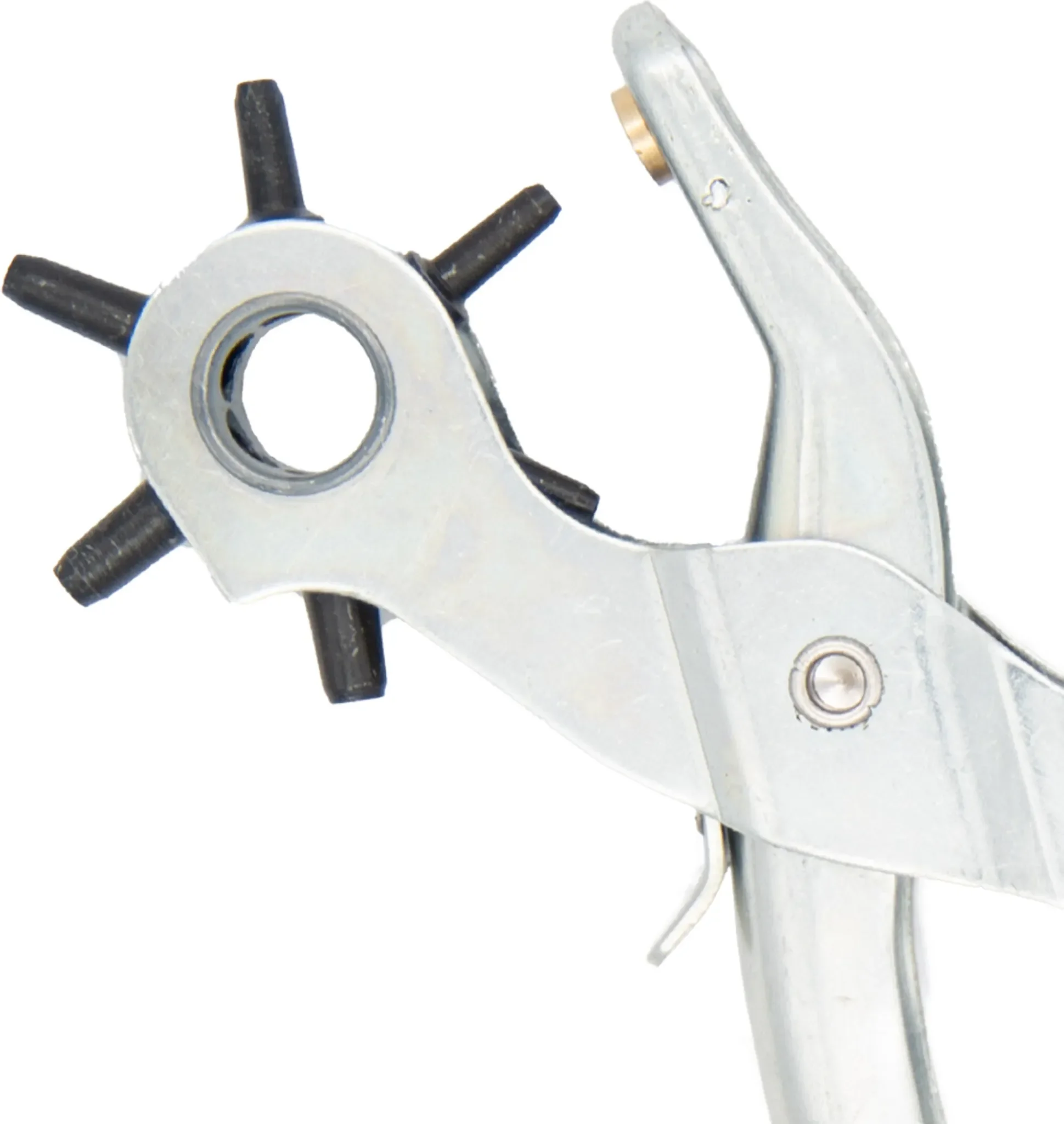 Diese praktische Revolver-Lochzange eignet sich ideal zum Stanzen von Löchern in Leder, Pappe, Textil- und Kunststoffmaterialien. Die Mechanik ermöglicht eine einfache Bedienung, während die Federspannung den Arbeitsablauf erleichtert – perfekt für Reparaturen, Bastelarbeiten oder Anpassungen an Gürtel und Taschen.