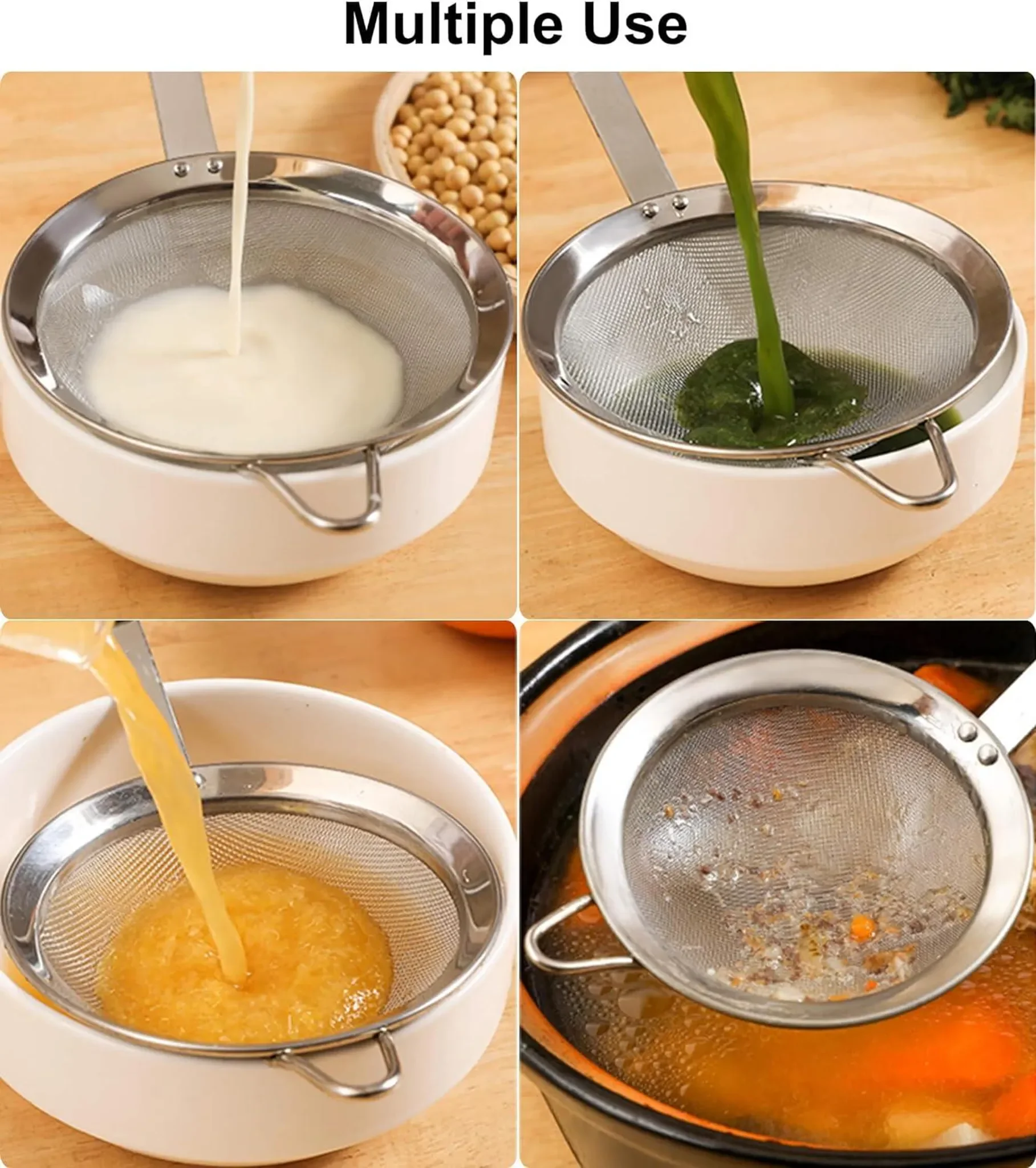 Highlights: Rostfrei & lebensmittelecht, robust durch Niettechnik, feinmaschiges Netz für präzises Filtern, grifffreundlich, spülmaschinenfest, leicht zu verstauen.