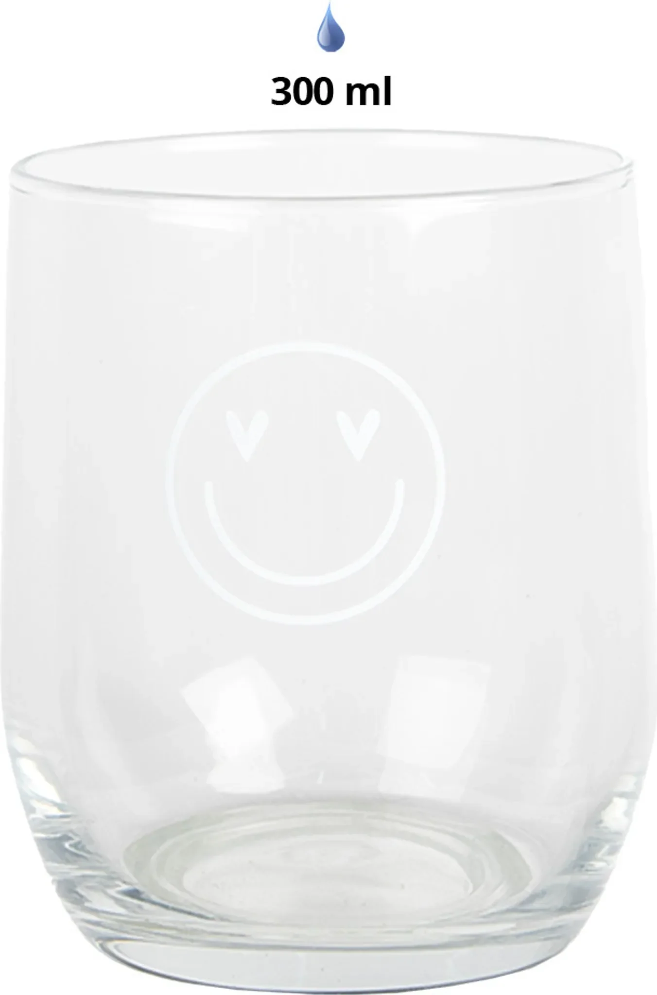 Produktinformationen "Clayre & Eef Wasserglas 300 ml – Transparentes Glas mit Smiley"
