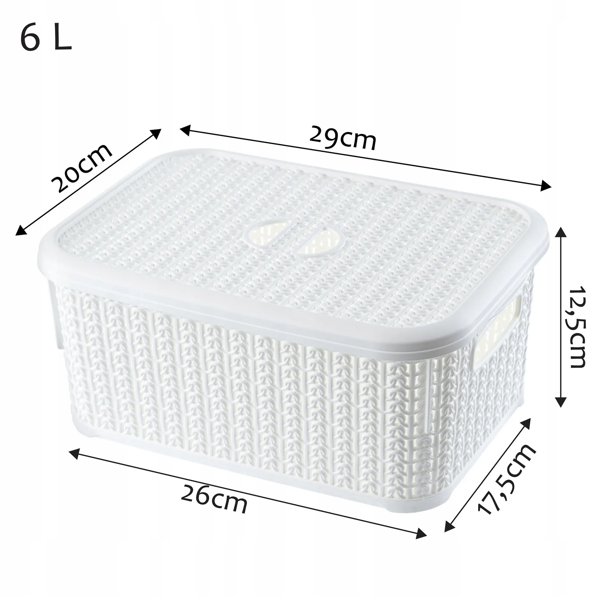 Rechteckiger Universalkorb mit passendem Deckel zur ordentlichen Aufbewahrung kleiner und mittelgroßer Utensilien. Ideal für Badezimmer, Schlafzimmer, Küche oder Büro – ein praktischer Helfer, um Kleinteile sauber und staubfrei zu organisieren.