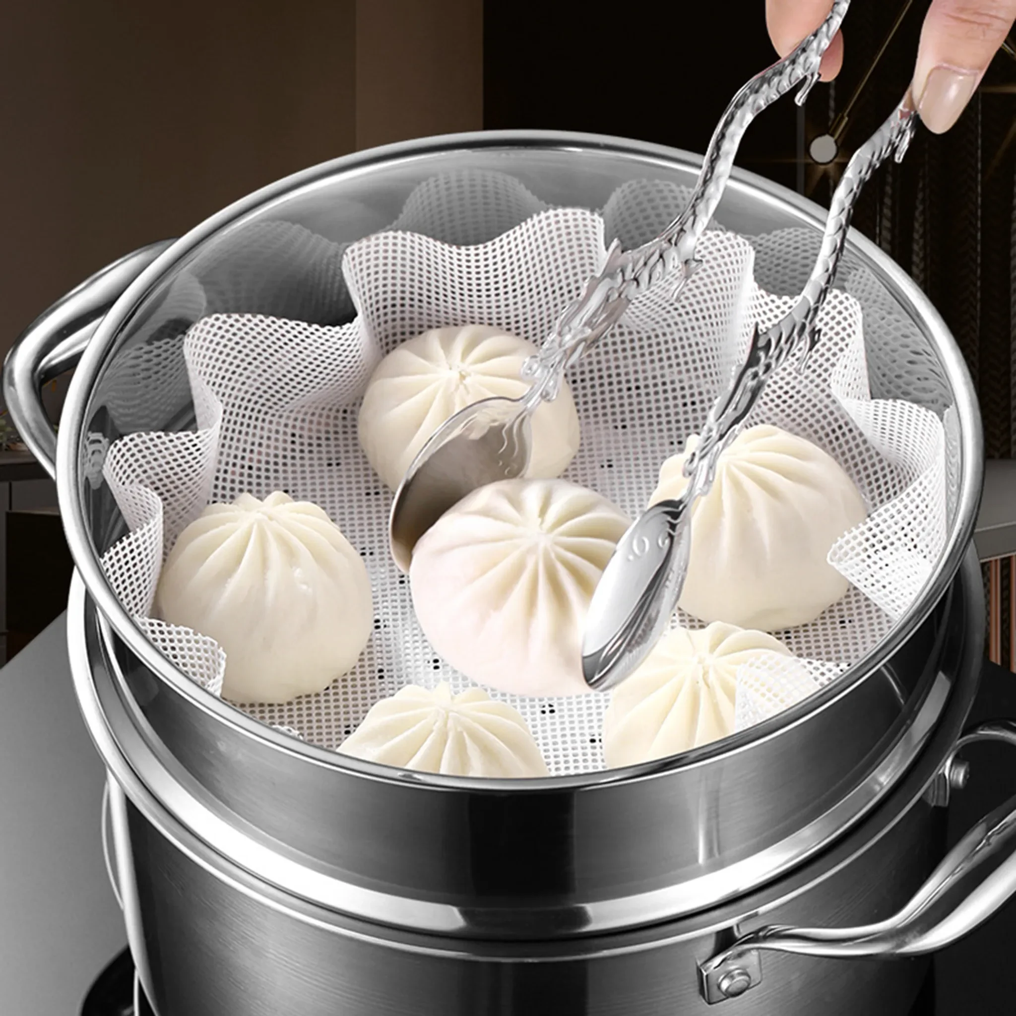 Praktische Dampfmatten aus lebensmittelechtem Silikon mit poröser Struktur für gleichmäßige Wärmezufuhr und sanftes Dämpfen. Ideal für Dumplings, Baozi, Dampfbrötchen, Knödel, Gebäck oder Gemüse – verhindert Ankleben und sorgt für weiche, gleichmäßig gegarte Ergebnisse.