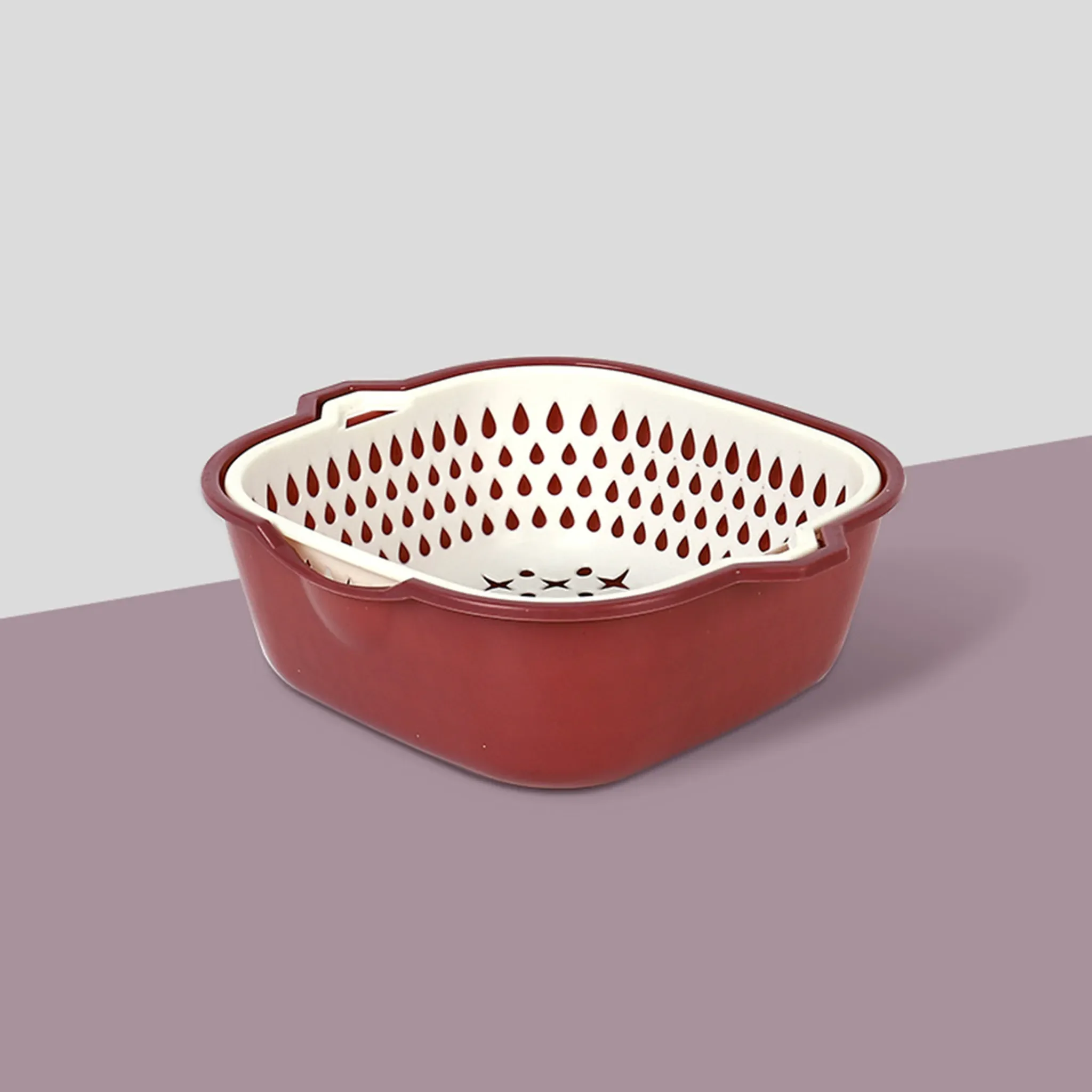 Praktischer Abflusskorb mit abnehmbarem Sieb zur schnellen Reinigung von Gemüse, Obst und Kochzutaten. Durch das Doppelschicht-Design lässt sich das Sieb nach dem Waschen einfach anheben, sodass Wasser sauber ablaufen kann.