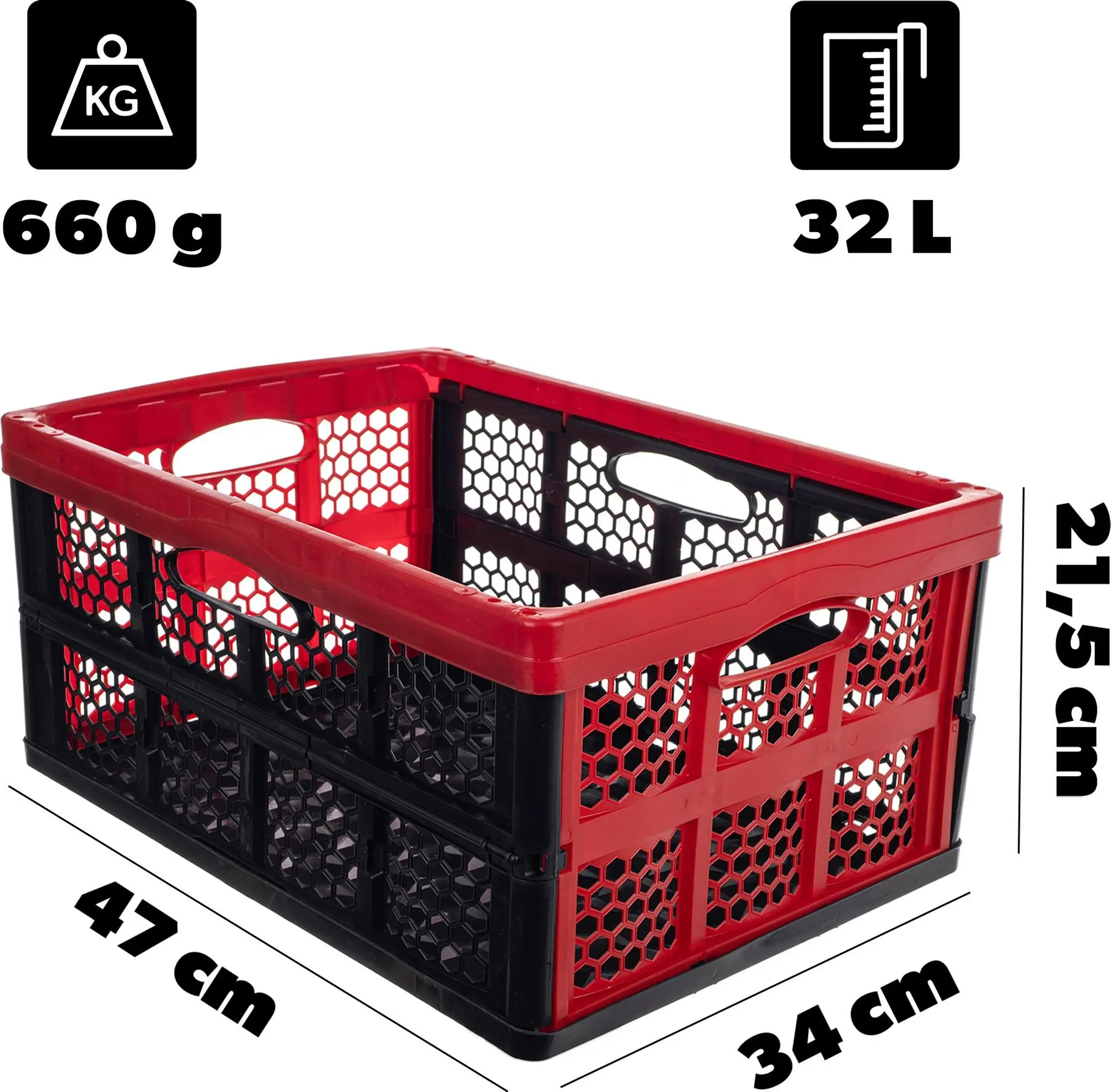 Highlights: Faltbar • Robustes Kunststoffmaterial • Ergonomische Griffe • Platzsparend • Vielseitig einsetzbar für Kofferraum, Keller oder Garage
