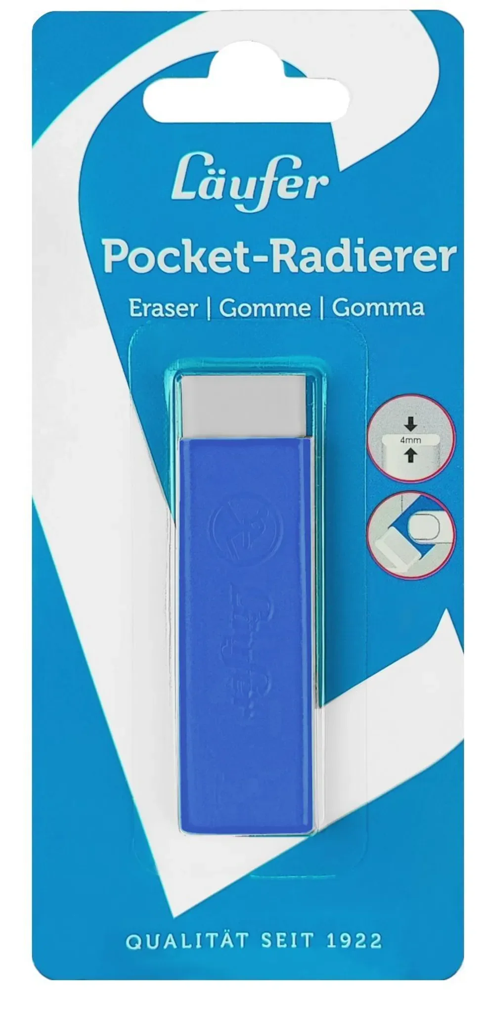 LÄUFER – Radiergummi Pocket 2, Kunststoff, blau