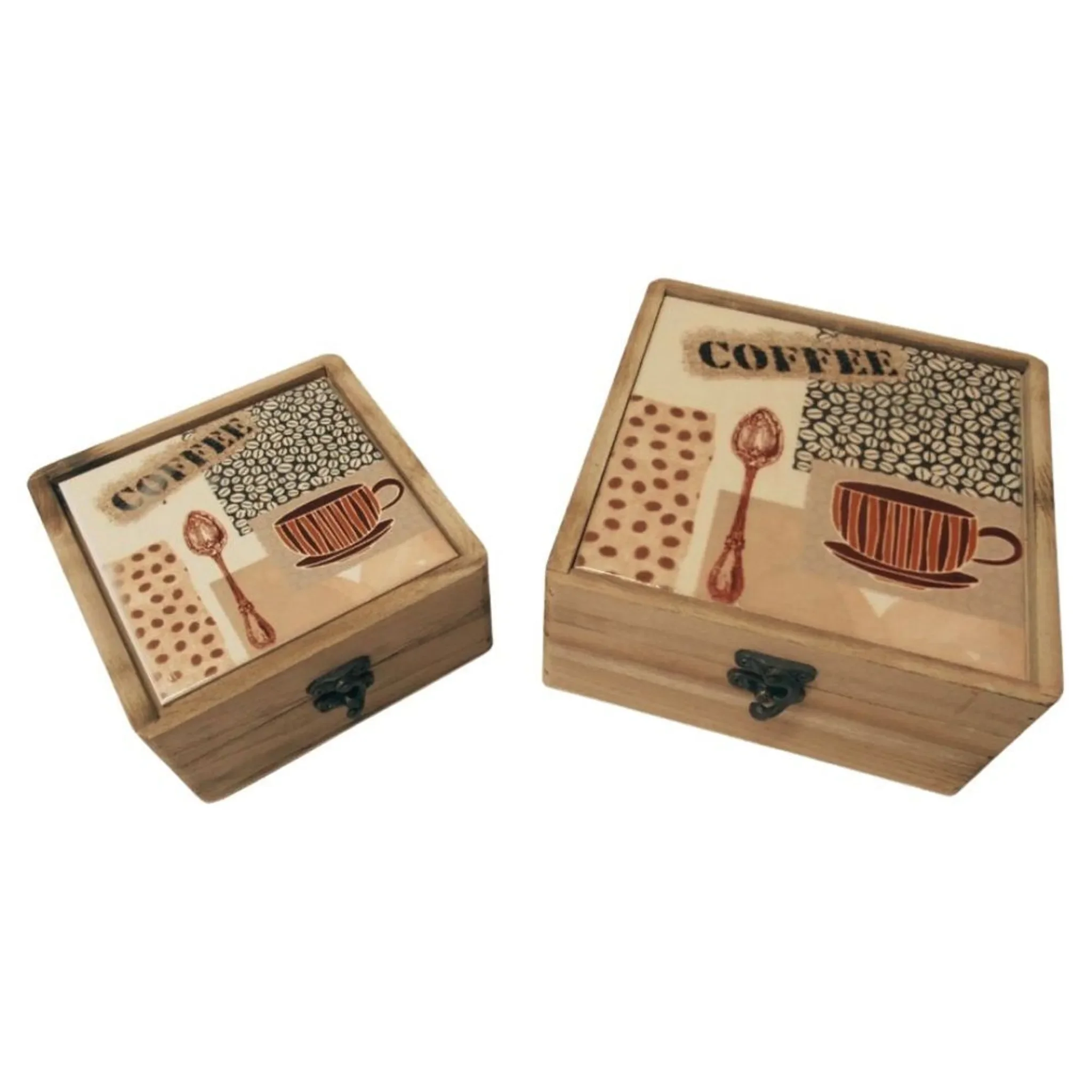 Das 2er Set Creative Deco Holzkisten von Locker besteht aus hochwertigem Balsa-Holz und eignet sich ideal zur Aufbewahrung von Erinnerungsstücken, Schmuck oder anderen Kleinigkeiten. Jede Box ist dekorativ gestaltet und verfügt über einen stilvollen Verschluss sowie eine Keramik-Fliese mit Kaffee-Nachbildung.