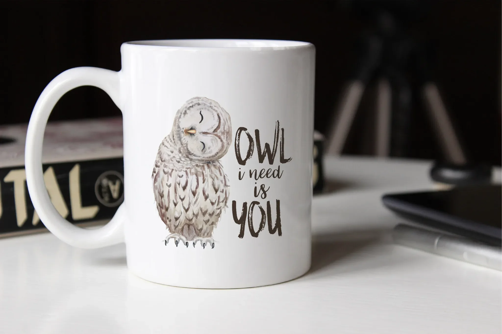 Diese charmante Kaffeetasse mit süßer Eule im Watercolor-Stil und dem humorvollen Liebesspruch „Owl I need is you“ ist eine zauberhafte Geschenkidee für besondere Menschen. Das verspielte Wortspiel verbindet Romantik mit einem Augenzwinkern und sorgt für gute Laune beim Kaffee- oder Teegenuss.