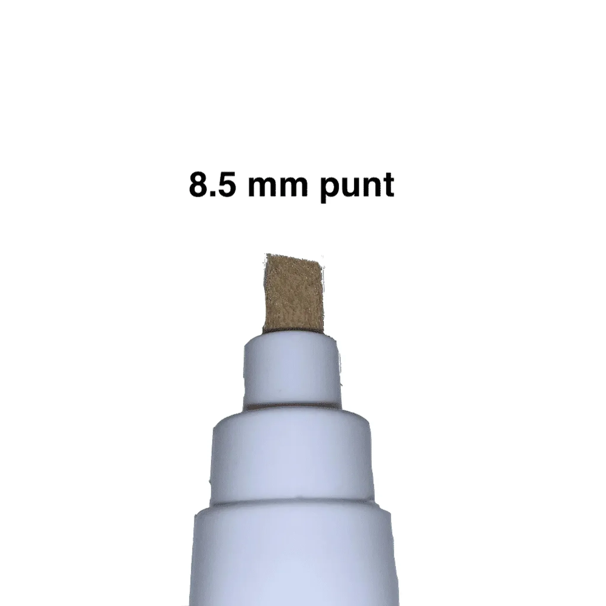 Dank der 8,5 mm breiten Meißelspitze lassen sich sowohl breite Linien als auch feine Punkte präzise auftragen. Ideal, um Sneakers aufzufrischen, zu personalisieren oder kleine Gebrauchsspuren optisch zu korrigieren.